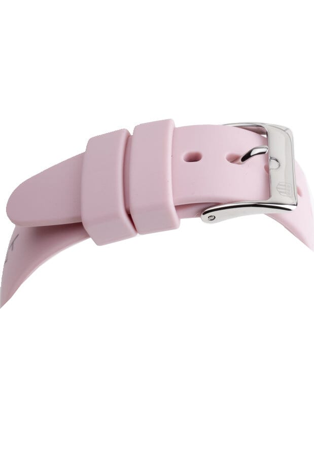 Fin barnklocka med nickelfri boett i rostfritt stål och ett följsamt, vattentåligt silikonband.
