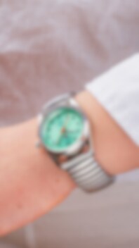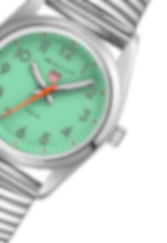 Den färgglada urtavlan har tydliga siffror och självlysande visare som gör det enkelt att hålla reda på tiden. Klockan har ett reptåligt mineralglas, är vattentät till 100 meter och