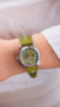 Fin barnklocka med nickelfri boett i rostfritt stål och ett följsamt, vattentåligt silikonband.