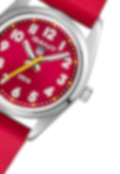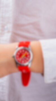 Fin barnklocka med nickelfri boett i rostfritt stål och ett följsamt, vattentåligt silikonband.