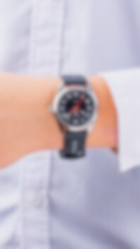 Klockan har ett reptåligt mineralglas, är vattentät upp till 100 meter och