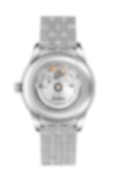 Certina erbjuder en utmärkt insyn i detta mekaniska ur: Bakboetten har ett robust glasfönster som låter en beundra mekanismen. Den utsökt konstruerade rotorn som garanterar strömtillförseln i alla automatiska klockor syns tydligt.