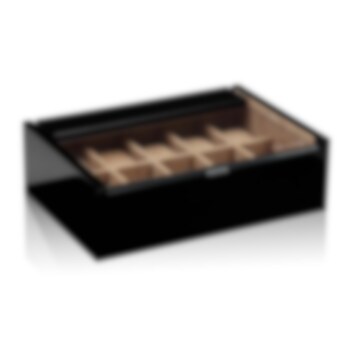 De handgjorda LUCIA klockboxarna av massivt trä och lock med stor härdad glasskiva erbjuder en utmärkt förvaring och snygg display av din klocksamling. De tre olika färgalternativen svart, ebenholts och carbon gör att de passar i de flesta miljöer.