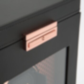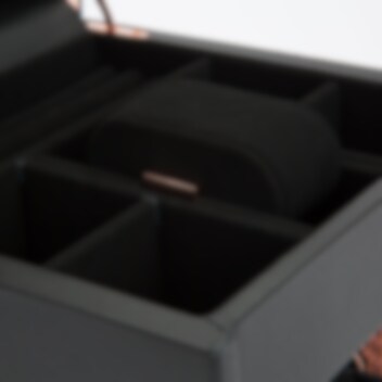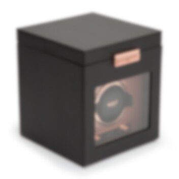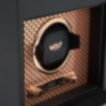 Kopparpläterat laserskuret perforerat stål blandat med rena, eleganta linjer. Axis driver ett modernt, djärvt utseende för att förvara dina klockor. Vår patenterade teknik för att räkna rotationer av axeln på din klocka garanterar exakta varv per dag. Djärv lyx, felfri design, ta Axis för en sväng. Denna winder har mikromockainredning, låsande glaskåpa, bakgrundsbelyst LCD-skärm, kopparbehandlad yta och en enkel klockhållare med extra förvaring.