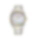 Denna vackra Seiko damklocka är tilltalande med sin fina lyster. Klockan har en klassisk design med länk och boett i bicolor och en skimrande urtavla i pärlemor. Urtavlan skapar en fin kontrast mot de guldiga visarna och blänkande markeringarna. Boetten är klädd med 18 gnistrande diamanter som förstärker klockans exklusivitet. En feminin klocka med ett vattenskydd på 10 ATM.