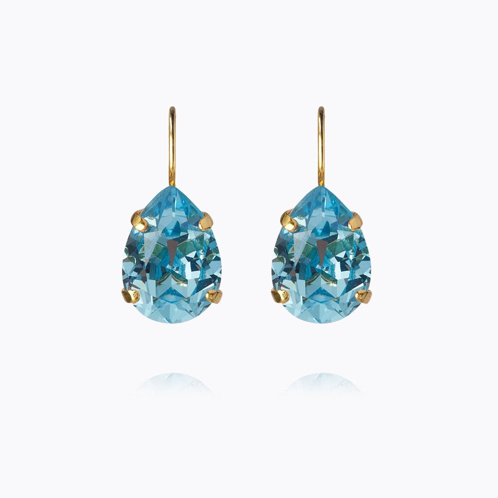 Mini Drop Clasp Earrings Gold Aquamarine