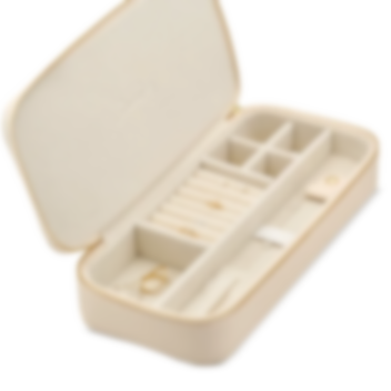 Detta eleganta smyckeskrin från Carolina Gynning är den perfekta förvaringslösningen för dina favoritsmycken. Tillverkat i en lyxig, beige färg med mjukt, vadderat inre, erbjuder detta skrin en säker och stilfull plats för att hålla dina smycken organiserade och skyddade. Med flera fack, ringhållare och små fack för örhängen och halsband, är skrinet designat för att rymma alla typer av smycken på ett ordnat sätt. Den sofistikerade designen med Carolina Gynnings logotyp på insidan gör detta smyckeskrin både praktiskt och vackert – perfekt att ha hemma eller ta med på resor.