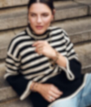 Långt halsband med ormkedja och hänge i form av 2st större ringar i blankt och matt. En av ringarna är 14k Guldpläterat stål.