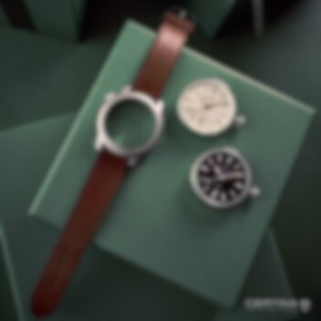 Hemligheten med DS+ ligger i konstruktionens tre delar: urverk, boett och armband. Vart och ett av de tre elementen är en fristående enhet som kan kombineras med de andra två efter personlig smak. Det runda urverket, trycks in underifrån i en av de två medföljande boetterna av rostfritt stål och skruvas säkert på plats med en separat krona på boetten. Ett innovativt band gjort av biomaterial säkerställer perfekt tätning. Med Certinas quick-relese system kan du enkelt byta ut bandet för att anpassa klockan efter din personliga dagsform och stil.