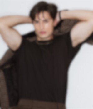 Brunt flätat läderarmband med lås i mattborstat stål.