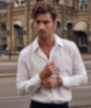 Armband med dubbla flätade läderband. Facetterad detalj mitt fram med matt finish i Stål. Längd: 16,5 - 21,5 cm Justerbart