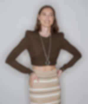 Långt halsband i guldpläterat stål med en kedja av flackslipad ankarlänk ihop med ett hänge av en stor oval ring.