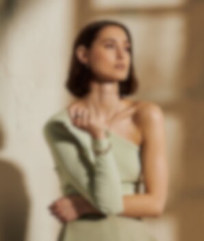 Kort halsband av nätt kedja och hänge i form av en oval, vackert vriden ring i guldpläterat stål.
