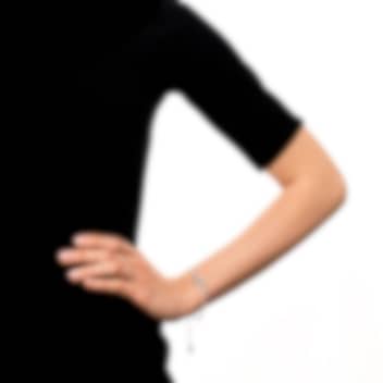 Elegant silverarmband med två sammanbundna ringar. I kollektionen finns även matchande halsband, örhängen och ring.