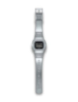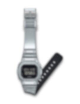 Det monokroma uttrycket kombinerar en metallram i silverfärg med ett nyutvecklat slitstarkt silikonband i samma färg. Bandets yta skyddas av ett uretanskikt som är silverfärgat genom ångbeläggning, vilket ger en metallisk glans samtidigt som bandet känns behagligt mot huden. Mjukt och bekvämt att bära, med ett glittrande metalliskt utseende, är detta modeaccessoaren som tar dig dit du vill.