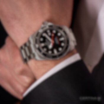 Snygg och sportig dykarklocka från Certina. En populär, funktionell och klassisk modell med en länk och klockhus i rostfritt stål. En fin detalj är den röda sekundvisaren som skapar en lagom iögonfallande kontrast mot den svarta bezeln och urtavlan.