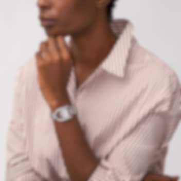 Medveten. Tidlös. Klar för vart du än tar dagen. Med en boett inramad av Fossils Heritage D-Link har detta uttalande Harwell-ur en silver urtavla och ett armband av rostfritt stål som är lika klassiskt som det är polerat.