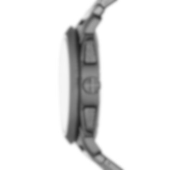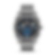 Till personen som letar efter den praktiska fritidsklockan, eleganta accessoaren eller det bekväma vardagsuret. Prisvärda och alltid trendriktiga. Sportig klocka med mörkgrå stållänk och boett. Urtavlan är svart med klarblå detaljer på indexmarkeringar och kronografer. Tuff design som passar lika bra till vardags som i springspåret.