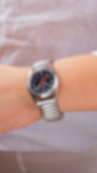 Snygg barnklocka med en nickelfri boett i rostfritt stål och ett elastiskt metallarmband som gör det bekvämt att alltid ha klockan på armen.