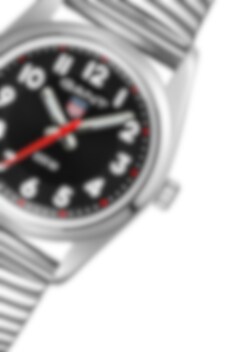 Den rena urtavlan har tydliga siffror och självlysande visare som gör det enkelt att hålla reda på tiden. Klockan har ett reptåligt mineralglas, är vattentät till 100 meter och