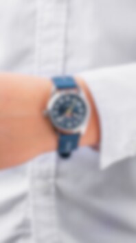 Klockan har ett reptåligt mineralglas, är vattentät upp till 100 meter och