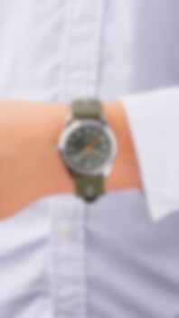 Klockan har ett reptåligt mineralglas, är vattentät upp till 100 meter och