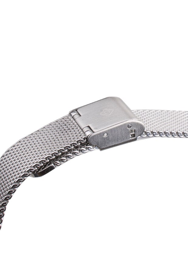 Optimal damklocka för dig som söker en stilren, klassisk klocka i mellanstorlek. Klockans boett har en diameter på 32mm, en perfekt storlek som passar de flesta. Klockan har en tunn och skir boett med en slimmad meshlänk. Urtavla är sparsamt utsmyckad med en skimrande silverbas som sammanflätas med silvriga timmarkeringar och visare. Klockan är vattenskyddad till 5ATM för att tåla vardagligt bruk som regnstänk eller lättare stänk när du tvättar händerna.