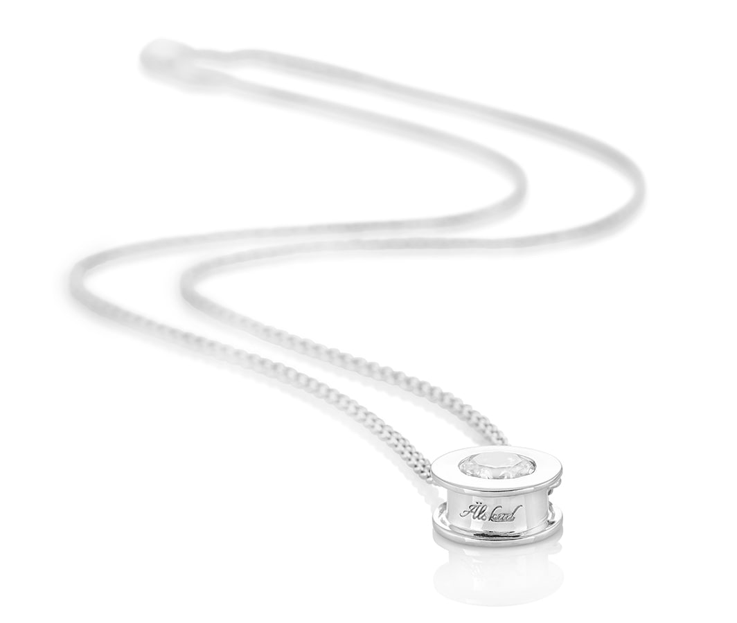 Stilrent halsband med Cubik Zirkonasten i en rund fattning och texten "Älskad" ingraverad på insidan. I denna omtyckta kollektion finns även matchande armband, örhängen och ring.