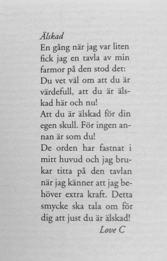Texten "Älskad" ingraverad
