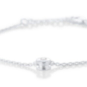Stilrent armband med Cubik Zirkonasten i en rund fattning och texten "Älskad" ingraverad på insidan. I denna omtyckta kollektion finns även matchande halsband, örhängen och ring.