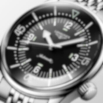Den kännetecknas omedelbart av sina två kronor och den interna roterande bezeln. Den nya Longines Legend Diver dyker upp med en diameter på 39 mm och förblir trogen den ursprungliga modellen från 1959, som har inspirerat dess design.