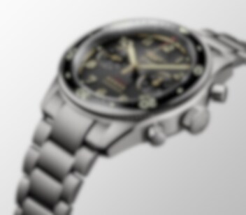 Longines Spirit Flyback är inte bara en funktionell verktygsklocka, den har även fått en uppgradering med en boett tillverkad av Grade 5-titan, en legering som är både lättare och hållbarare än stål. Estetiskt imponerar kronografen med sin 42 mm stora boett, som har en satinpolerad finish och spelar med kontrasterna mellan mörka nyanser och subtil glans. Dess starka och eleganta design kombinerat med toppmodern teknologi ger denna nya tidsmätare en exceptionell karaktär.