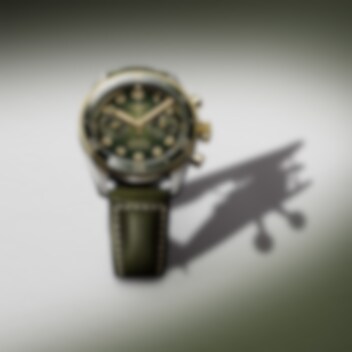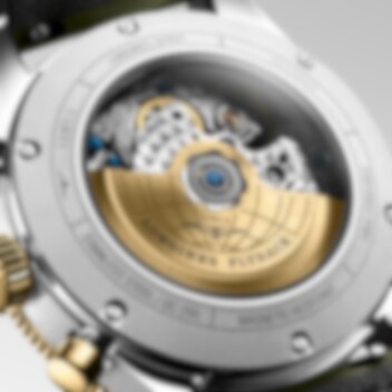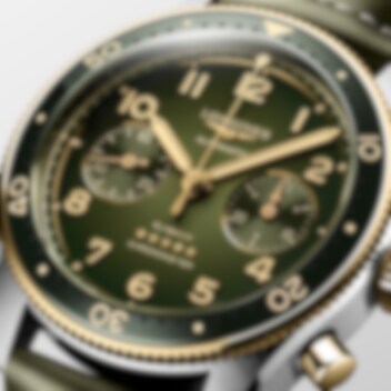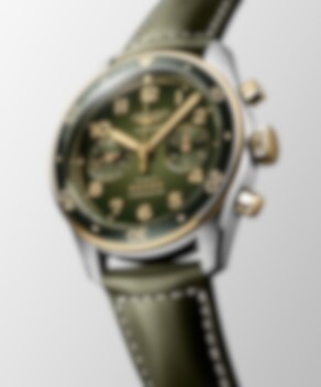 Longines Spirit Flyback har en diameter på 42 mm, ett mattgrönt urtavla med Flyback-funktion, samt en kapsel, krona och tryckknappar i 18 karat gult guld. Den är vattentät ned till 10 bar (100 meter) och drivs av ett exklusivt Longines-kaliber som är certifierat som chronometer av COSC, med en gångreserv på upp till 68 timmar. Denna klocka levereras med ett utbytbart grönt läderarmband och en viklås med mikrometerventilationssystem.
