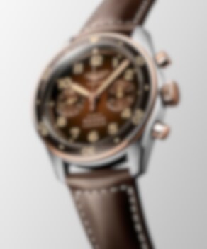 Longines Spirit Flyback är en klocka med en diameter på 42 mm, utrustad med flyback-funktion och en skuggad matt brun urtavla. Klockan har en kapsel, krona och knappar i 18 karat roséguld, är vattentålig upp till 10 bar (100 meter) och drivs av det exklusiva Longines-urverket, certifierat av COSC, med en gångreserv på upp till 68 timmar. Denna klocka levereras med ett utbytbart brunt läderarmband, försett med en viklås med mikrometertjustering.