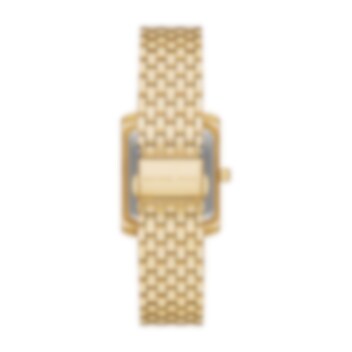Michael Kors 33 mm Emery-klocka har en grön urtavla med tre visare och ett armband av rostfritt stål i guldton.