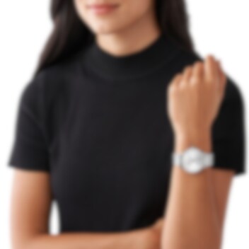 Portia är en lyxig, stilren klocka från Michael Kors med silverfärgad boett i rostfritt stål. Meshlänk i rostfritt stål och urtavlan i samma vackra färg. En bedårande detalj är sekundvisaren som är placerad avskilt mot en bakgrund av smyckesstenar.