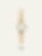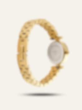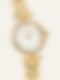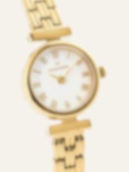 Tidlös med en känsla av historia. Den runda boetten och de romerska siffrorna flirtar med vintage-estetik, medan den guldfärgade finishen och den vita urtavlan skapar en ljus, modern kontrast.