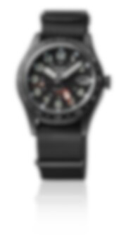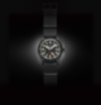 Den framstående femkantiga GMT-visaren i rött förbättrar tydligheten mot den svarta urtavlan.