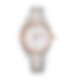 Denna batteridrivna modell från Seiko är försedd med safirglas, vattentät upp till 10 ATM och har en diameter på 30mm. Klockan har en elegant och lättläst urtavla i pärlemor med roséfärgade index och visare samt en datumvisare vid klockan 3. Urtavlan kombineras med ett länkarmband av stål i silver och rosé.