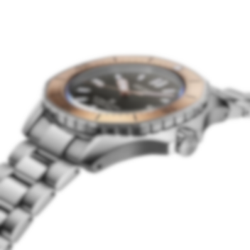 Urtavlans mönster, inspirerat av graciösa vågor, framkallar en fridfull kustscen, vilket förstärker klockans elegans och skönhet. Formen på de Lumibrite-fyllda händerna ger läsbarhet som anstår 300 meter vattentäthet, möter dykares behov och gör det enkelt att kontrollera tiden i mörkret. Boetten och armbandet utstrålar en elegant lyster med sina breda, spegelvända ytor. Den månghörniga ramen, sammansatt av mjukt böjda ytor, skapar ett aktivt och graciöst intryck. Designen har utmärkt mångsidighet för olika tillfällen, från ett affärsmöte till poolen på en resort.