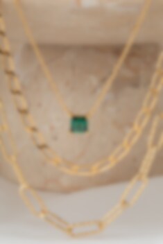 Halsband av 18 karat guldpläterad 925 Sterling, polerad yta, med gröna hand placerade Emerald skurna zirconia stenar.