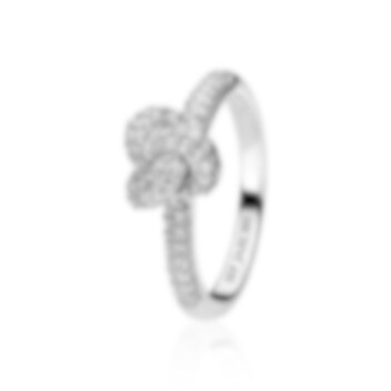 Ring i rodiumpläterat 925 sterlingsilver med polerad yta och handplacerade fasetterad vita zirkoner