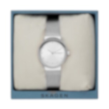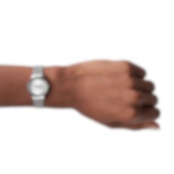 Stilren dansk design till personen som letar efter en nätt klocka som håller över tid. Liten damklocka i rostfritt stål med en silvrig lyster. Urtavlan pryds av gnistrande stenar istället för siffror.