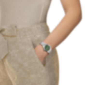 Denna modell har en grön urtavla och är utrustad med utbytbara snabbkopplingsarmband. Alla klockor har den vackra clous de Paris “guilloche” urtavlan i form av små pyramider en detalj som verkligen gör skillnaden. Samspelet mellan polerade och borstade ytor på länkarna skapar en fängslande visuell rytm som fångar ljuset med varje rörelse. Denna klocka förkroppsligar charmen av schweiziskt arv, med namnet ""Le Locle,"" inskrivet i kursiv stil i ansiktet, ger en sofistikerad touch och inbjuder dig att fira dina rötter. Den senaste modellen har banbrytande Nivachron Spring Balance-teknik, som avsevärt mildrar effekterna av magnetfält samtidigt som den är resistent mot stötar, åldrande och temperaturvariationer. Denna modell inkluderar en datumfunktion och en genomskinlig baksida som avslöjar den fascinerande mekaniken på jobbet.