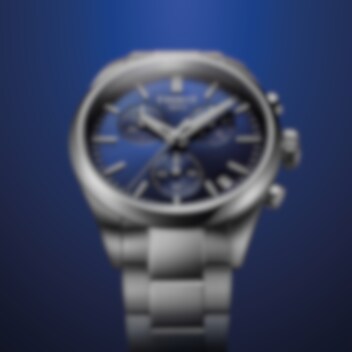 PR 100 Chronograph förenar sportig karaktär med tidlös elegans och är utrustad med ett pålitligt quartz-kronografverk. Modellen bär sitt namn med stolthet: "P" för Precision, "R" för Robusthet, och "100" som syftar på dess vattentäthet upp till 10 ATM (100 meter).