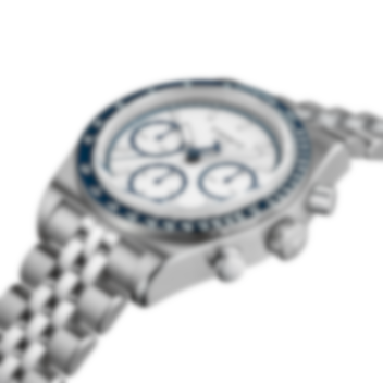 PR516 introducerades först på 1960-talet och inspirerades av bilracingens höghastighetsvärld. När Tissot utökar PR516-serien, fortsätter den att underblåsa andan hos dem som söker en klocka som är lika obeveklig som deras strävanden – vilket driver dem att möta utmaningar direkt, precis som hjältarna som bär den. Valjoux kronograf, tachymeter och pulsometer fungerar unisont och är byggda för att fånga varje slag när livet känns spännande. Med hastighet och puls spårad på ramen, och tiden tydligt visad på den vita urtavlan med blå accenter, erbjuder denna design en sömlös och intuitiv upplevelse som frammanar den gränslösa himlen och den gränslösa potentialen som ligger framför dig. Räknarna, placerade på den nedre delen av urtavlan, förstärker klockans dynamiska utseende.