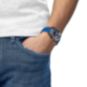 Upptäck Tissot Sideral, en fascinerande kombination av vintagecharm och modernt hantverk. Klockan har en 41 mm bred kolfiberboett och ett levande blått armband, som hyllar dess ikoniska ursprung från 1970-talet. Urtavlan visar en mångfärgad lysande animation som förhöjer dess unika attraktionskraft. Med en vattentäthet upp till 30 ATM (300 meter) och Super-LumiNova®-belagda timmarkörer är Sideral en uttalande klocka för trendskapare och historieentusiaster. Det utbytbara perforerade gummiarmbandet gör det enkelt att anpassa din stil. Omfamna det extraordinära med Tissot Sideral.