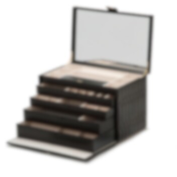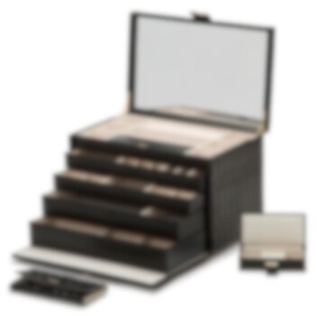 Förkroppsligandet av sofistikering och stil. Caroline Extra Large Jewelry Case, en tidlös klassiker med eleganta mjuka linjer från 50-talet, smidigt diamantquiltat läder utsmyckat med gulddetaljer. Detta raffinerade fodral är det perfekta hemmet för dina dyrbara smycken och arvegods.