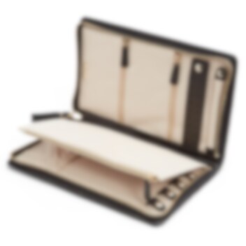 Förvaring: 1 örhängestang, 1 ringstång, 3 dragkedjefack, 4 halsbandshållare med ficka